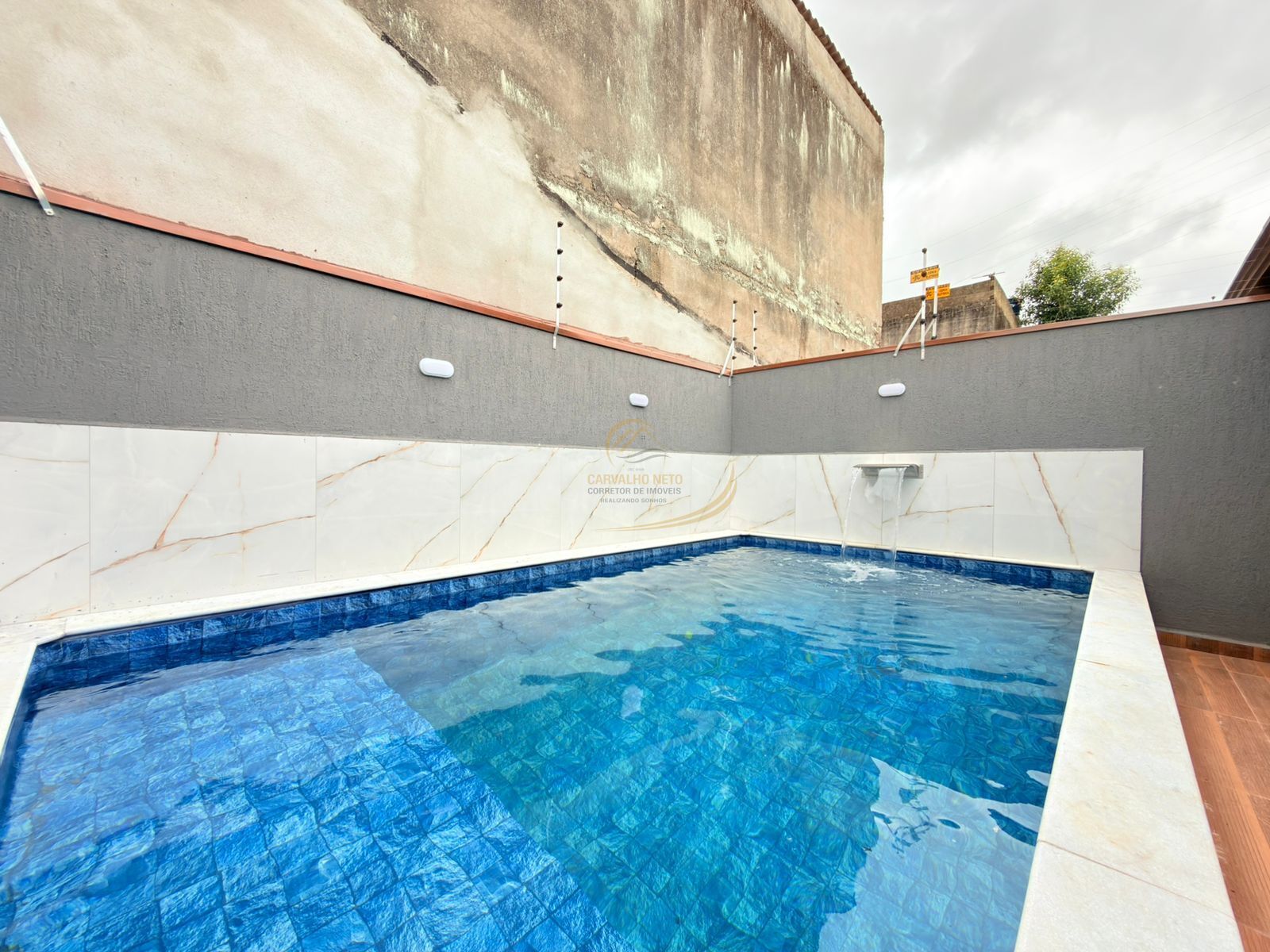 PISCINA COM CASCATA E BANCO MOLHADO.