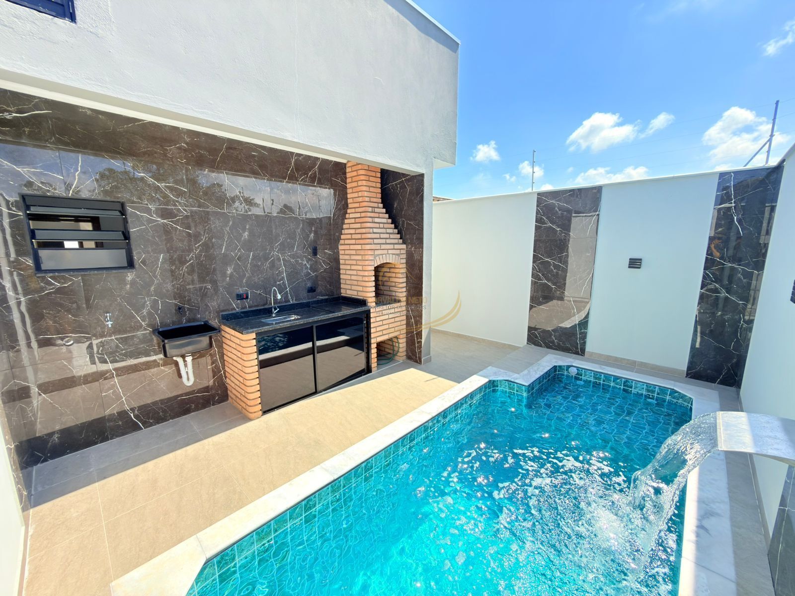 PISCINA COM CASCATA E BANCO MOLHADO;