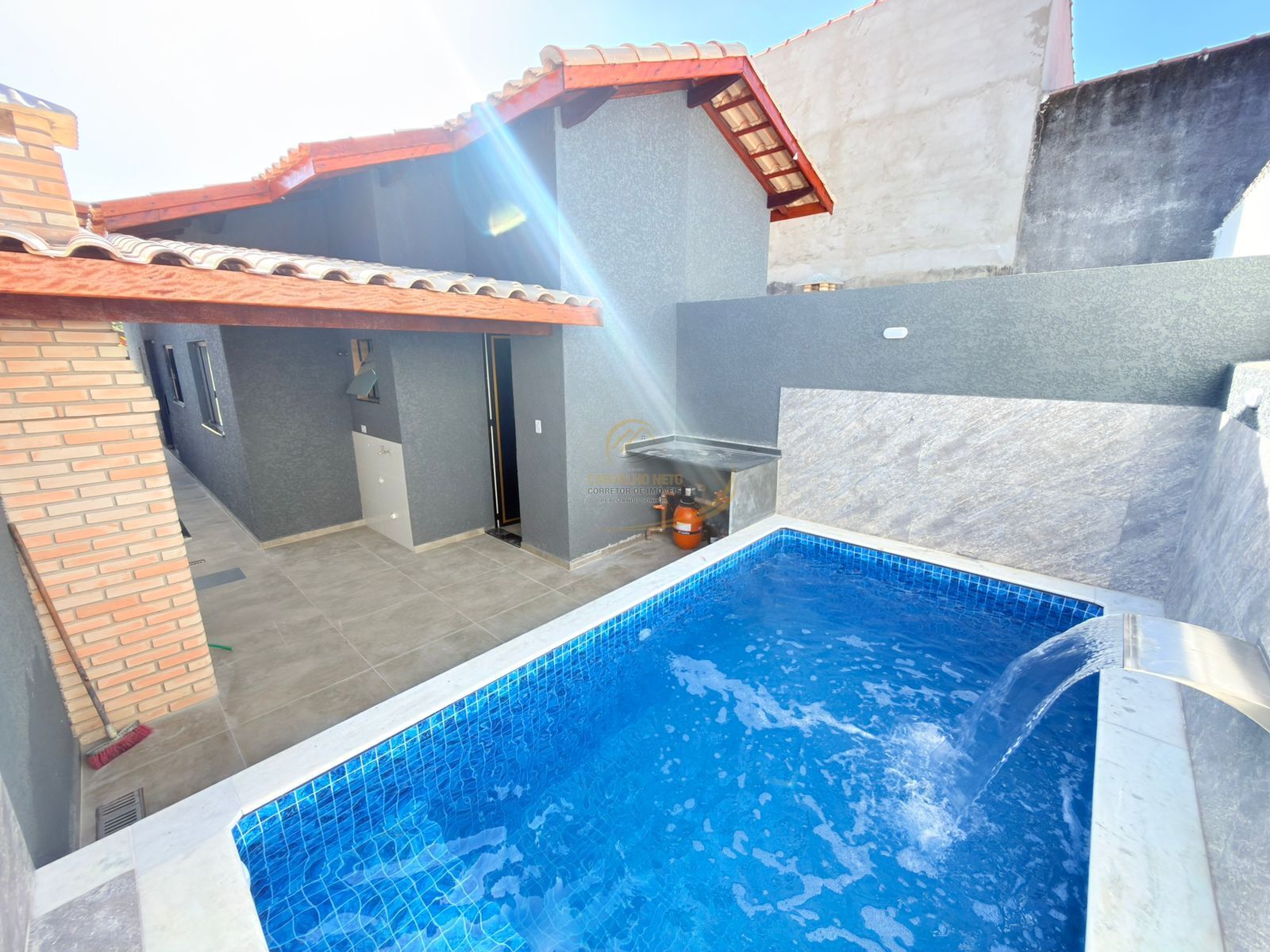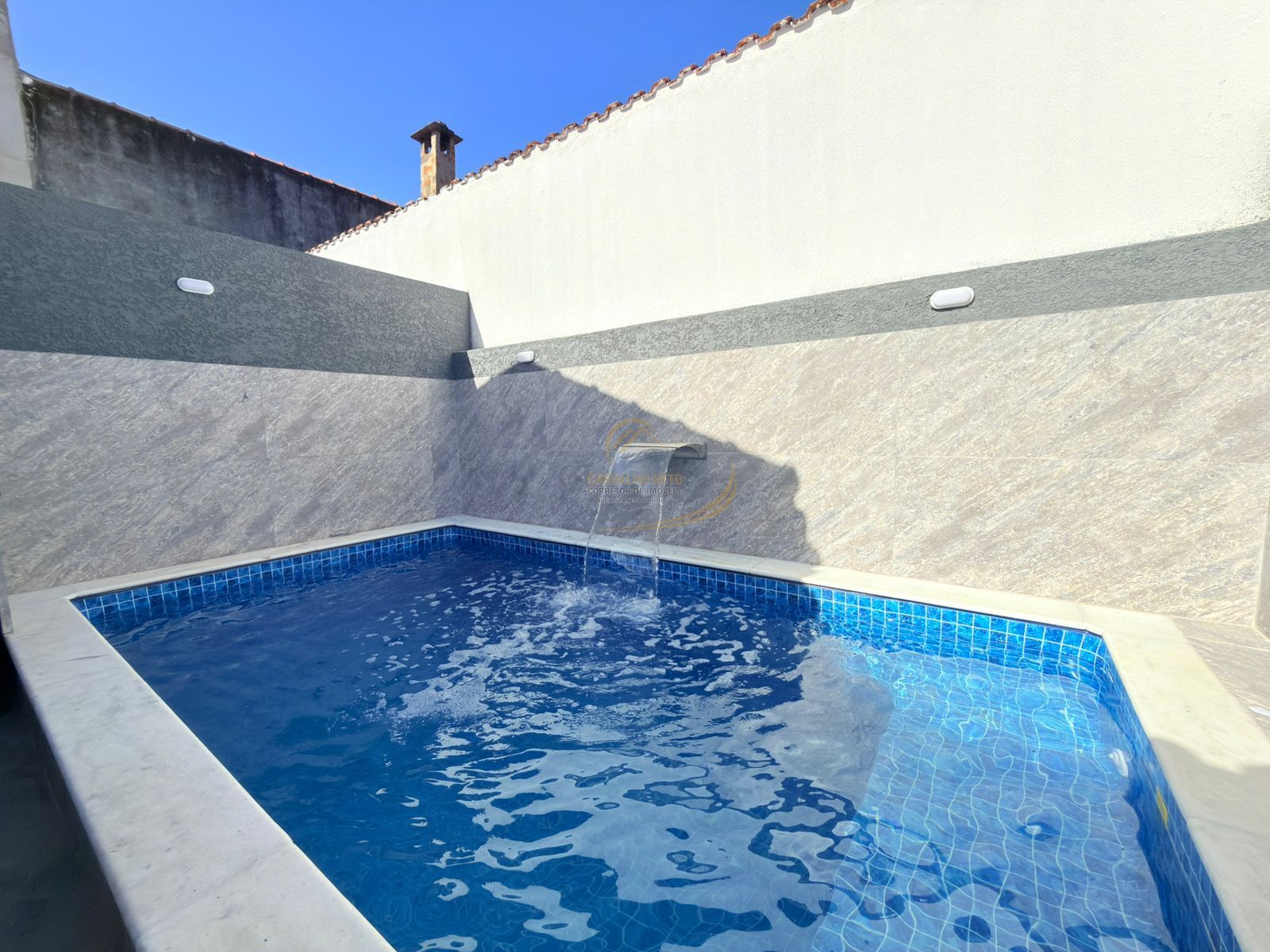 PISCINA COM CASCATA, LED E BANCO MOLHADO;