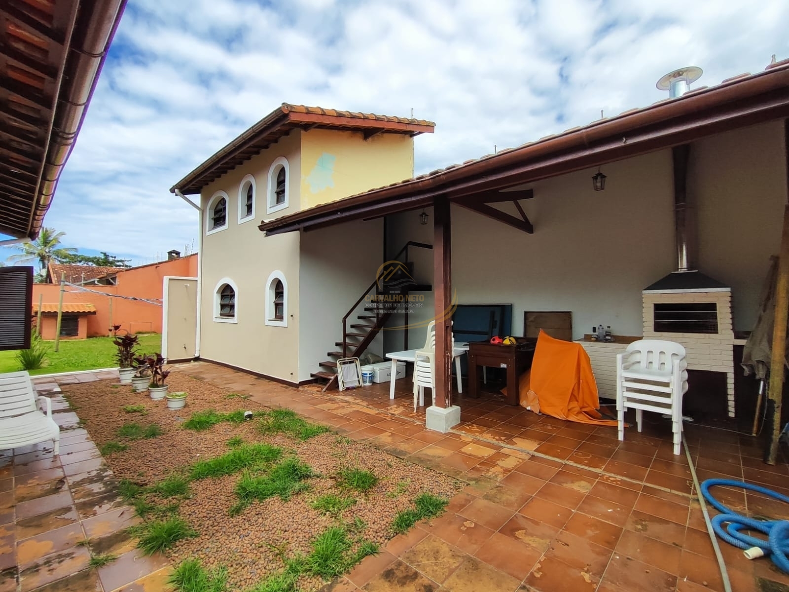 EDÍCULA COM DOIS ANDARES, CHURRASQUEIRA E LAVANDERIA.