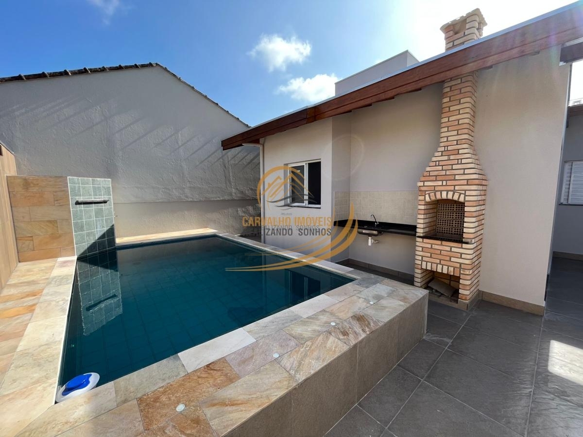 O acabamento dessa casa é simplesmente impecável. Com churrasqueira e pia, você poderá desfrutar de deliciosos churrascos e momentos de descontração ao ar livre. E para os dias de calor, a piscina de alvenaria com cascata será o refúgio perfeito para se refrescar e relaxar.