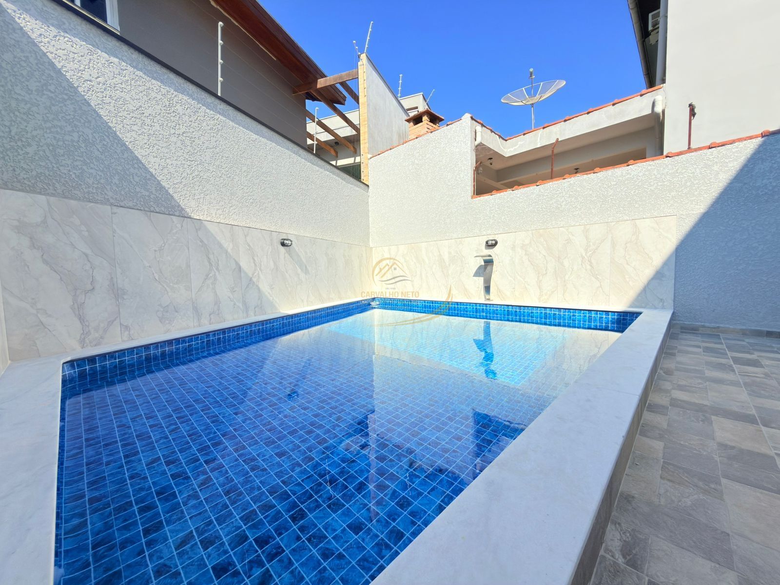 PISCINA COM CASCATA E BANCO MOLHADO COM HIDROMASSAGEM;